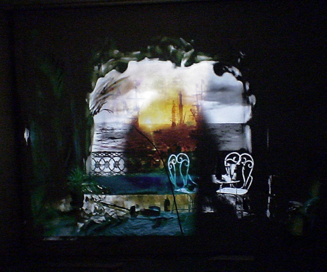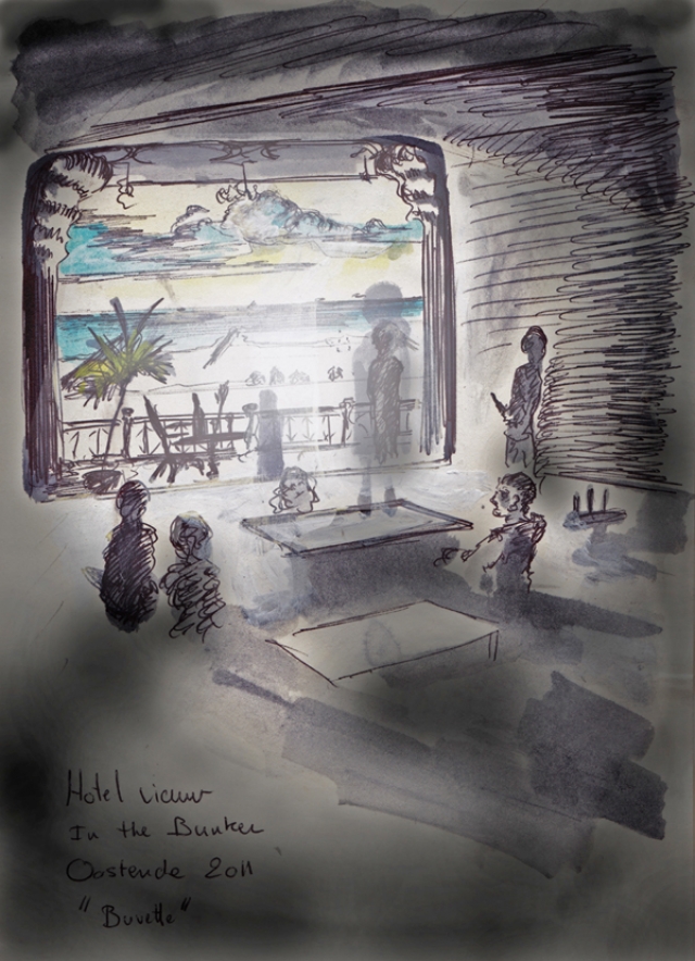 Deze in Situ installatie is in een Bunker van de “ Atlatic wall “gebouwd. Het zijn twee projectoren die een zicht op zee projecteren. Deze projecteis worden op hun beurt op een schilderij geprojecteerd. Voor de projecties staan stoelen om van het “ Uitzicht te genieten “. De angst , dreiging van de zee wordt omgezet in vrijheid en lieve door een barok hotel kamer.