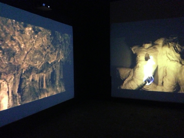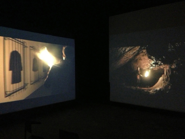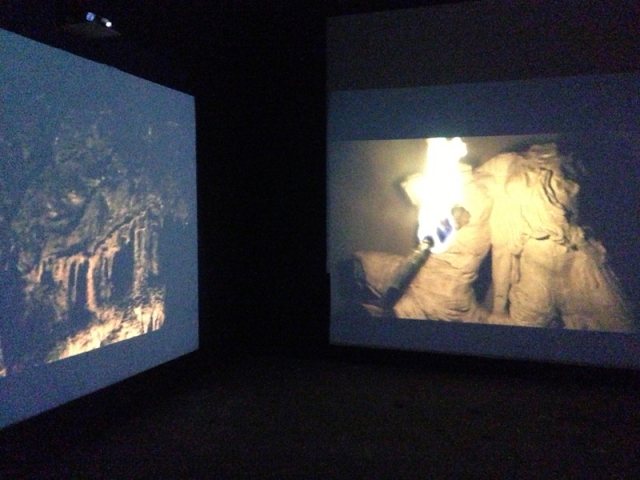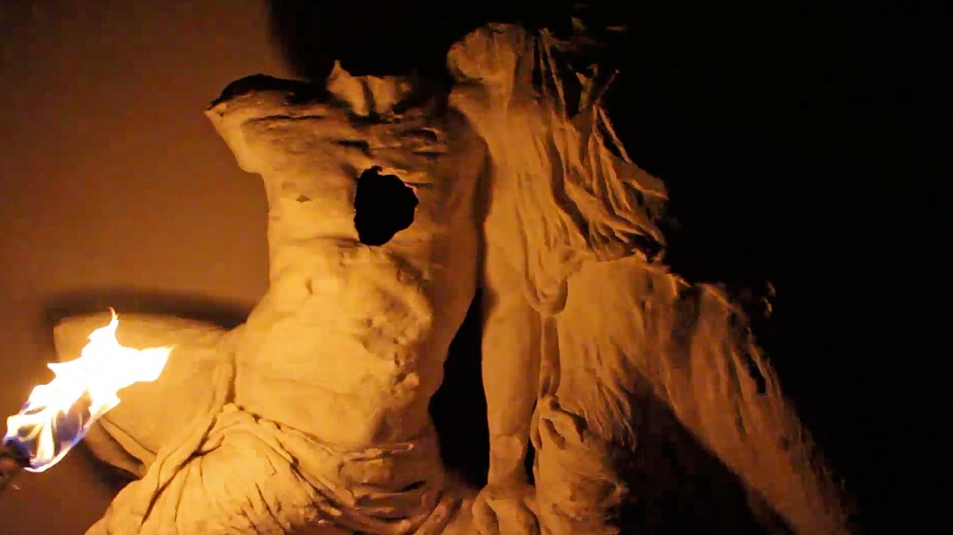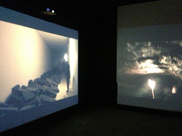Deze installatie is opgebouwd met drie video projecties. Elke video projecteerd simultaan een de kunstenaar wandelend met een fakkel door een : bos een : Muzeum van hedendaagse kunst een : Grot en een muzeum van klasieke kunste.